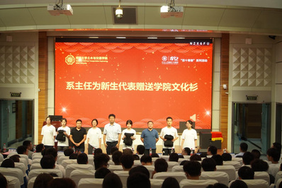 三位系主任分别为新生代表赠送学院定制文化衫。