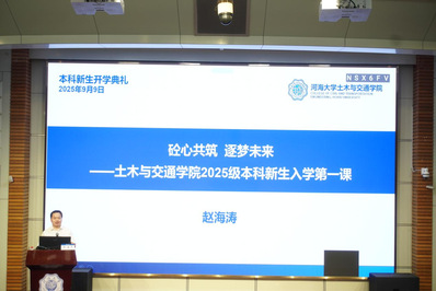 迎新大会第二阶段,赵海涛院长为全体新生带来了精彩的开学第一课。赵海涛院长简要介绍了学校与学院的发展历程与现状,详细分析了在国家制造强国、交通强国、海洋强国、质量强国等重大战略布局下土木行业未来的发展形势。随着人工智能、大数据等技术不断发展,土木工程领域将更聚焦于效率提升和可持续发展。在全球化背景下,土木工程行业将加强国际合作及多学科交叉发展。最后,赵海涛院长鼓励同学们大学期间要学会独立、学会选择,鼓励同学们制定详细的学习和成长计划,通过持之以恒的努力,争取在未来脱颖而出。