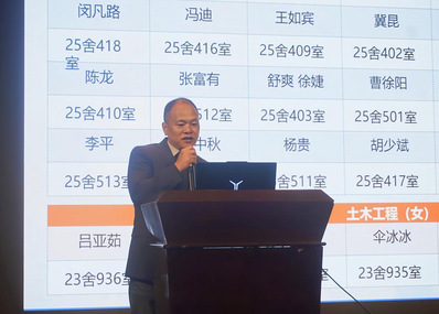 在师生的共同见证下,吴建涛副院长上台为导师们抽取宿舍配对名单。吴院长宣读学业导师姓名与匹配宿舍号,学业导师们也依次起立与同学们挥手致意。学业导师与宿舍顺利完成配对,这一举措将助力学生在专业学习与生活成长中获得更精准的指导与支持。