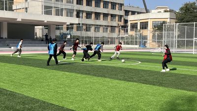 决赛于11月21日打响,双方展开激烈对决。比赛伊始,中场争夺尤为胶着,博士班通过一次精妙配合,由中场队员远射破门,率先得分。进球后博士班气势如虹,接连进攻再次拿下两球,迅速建立了领先优势。面对分差,土木水利4班沉着应变,调整战术,在下半场通过快速反击扳回一球,重燃赛事悬念。