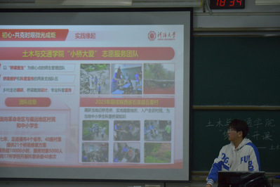 在社会实践分享环节中,鲁乔丹学长结合“小桥大爱——大学生专业赋能乡村振兴志愿服务项目”展开分享。他讲述了团队深入乡村开展公益桥修建的过程,每个环节都凝聚着团队的专业与坚守。他鼓励学弟学妹们提升个人综合水平,将专业所学融入社会实践,在实践中锤炼本领,实现价值。
