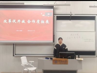 主讲人王婉涵同学以“改革促开放,合作质拓展”为主题,探索改革与开放的深度融合,感受青年如何以开放视野拓展合作维度,让合作质效在双向奔赴中持续提升,每一次开放合作都凝聚着创新智慧,每一次携手共进都彰显着改革魄力,她指出,青年应以开放姿态拥抱世界,以务实合作共赢未来,方能在新时代开放浪潮中勇立潮头。