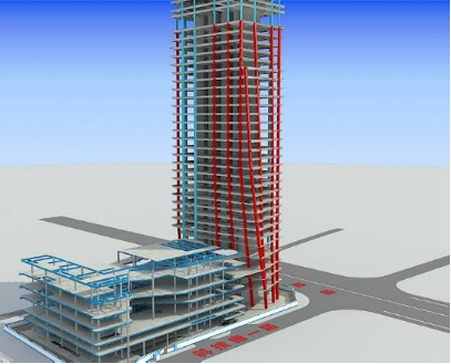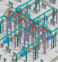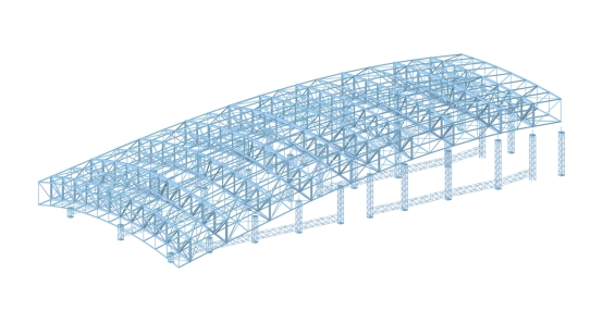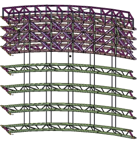 多层钢桁架施工现场                多层钢桁架三维模型图