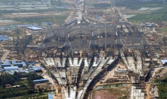京沪高铁天津西站效果图          雨棚钢结构施工现场